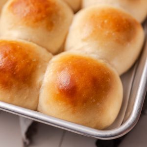 - Bread flour – Bread flour when making bread seems sort of duh, but honestly before I started baking bread I don’t know if I knew it existed. I knew of cake or wheat flour and maybe almond flour. Bread flour is going to help your rolls have that distinguishable bread chew and be a little loftier than rolls made with all purpose. Now, can you swap AP in if you don’t have access to bread flour? Yes. Your dough might be a touch stickier because bread flour absorbs a little more liquid but the dinner rolls will still turn out lovely!