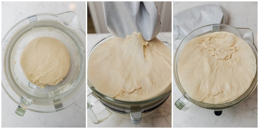 - Remove your dough from the bowl and shape into a ball. Lightly grease the inside of your bowl and place your dough ball inside. Cover the bowl and let rise in a warm spot until the dough has doubled in size – 1-3 hours.