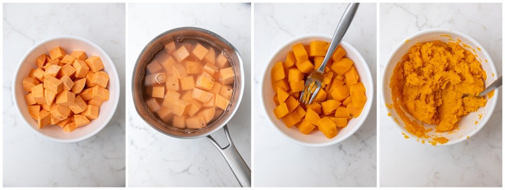 • Let your mashed sweet potatoes cool while you prepare the rest of the batter.