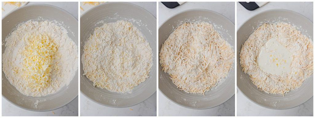 - Added your grated cheese and mix/fluff into the dry ingredients similarly to the butter.113 g Cheese
