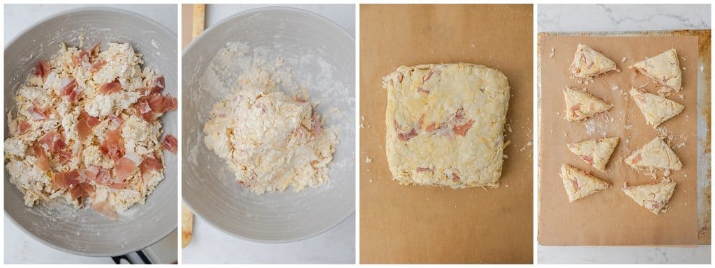 Prosciutto likes to stick together so try as best as possible when sprinkling it into the dough to separate any chunks that formed while dicing.