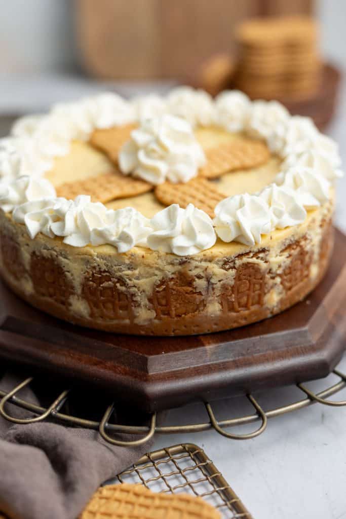 I like baking my cheesecakes in an 8 inch pan so they are a little bit thicker. A lot of springform pans are 9 inch though. I usually use a Fat Daddio’s removeable bottom pan.