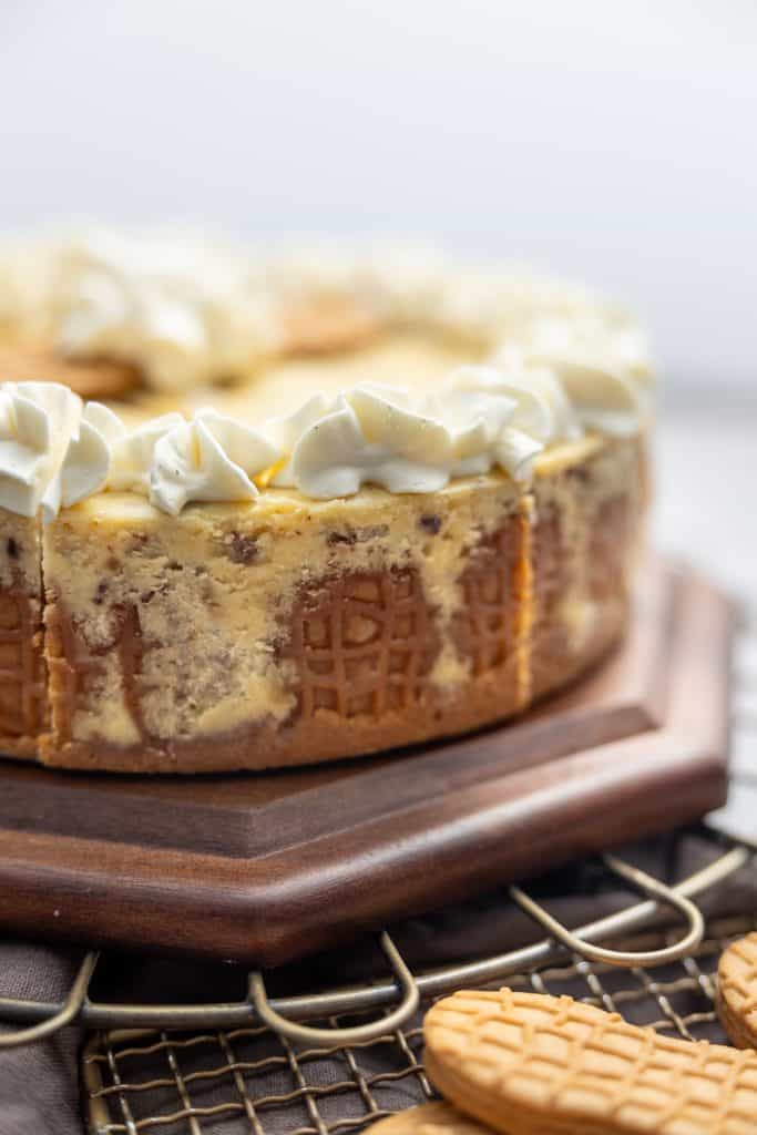 I indulged in this decadent cheesecake and honestly, it’s a crime against humanity that I did not have it sooner. I wish that I could become a part of this cheesecake. It is perfectly peanut buttery but the chips shine through too and the flavors are all perfectly melded together. Leaving it out for a little bit before consuming also made all the difference. The temperature change made all the flavors feel more flavorful and meld together perfectly. MAKE THIS CHEESECAKE